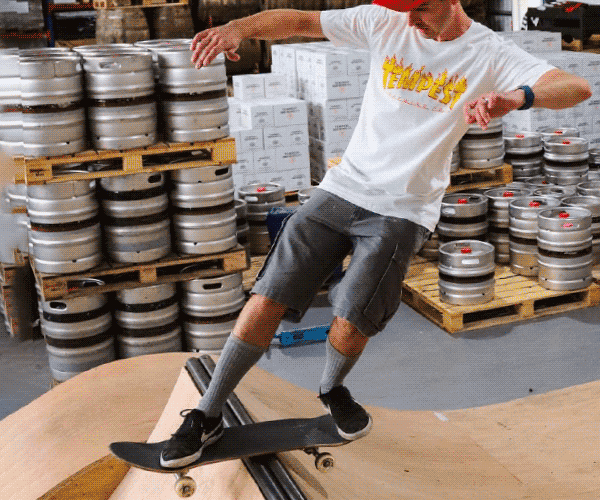 The more we grew, the more space we needed for holding stock as well as find a home for our new barrel-ageing program. And just like all serious breweries would do, we crammed all the barrels and kegs into one corner of our new warehouse and install a skate ramp... giving a different meaning to the "daily grind"