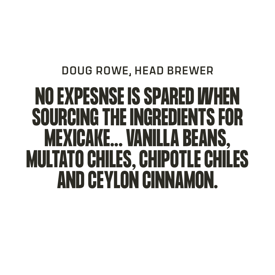 Our love for Mexican culture and food is the reason we made this rich, boozy imperial stout infused with vanilla beans, cocoa, cinnamon, chipotle and mulato chiles.