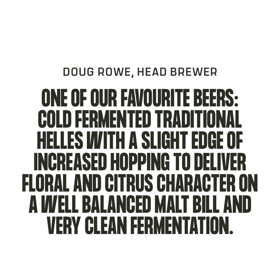 Modern Helles is undoubtedly one of our favourite beers - the hop and malt character is subtle - designed to let the fresh bready notes from the lager yeast to come through for an all round pleasant and highly smashable helles.